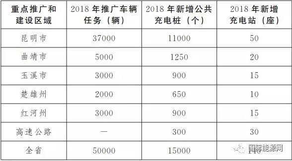 新能源汽車推廣目標(biāo)。重點(diǎn)圍繞私人購車、政府采購、公共出行、城市物流(含郵政,下同)以及旅游等領(lǐng)域,在昆明市、曲靖市、玉溪市、楚雄州、紅河州等滇中城市群和重點(diǎn)旅游城市及景區(qū),2018年推廣5萬輛新能源汽車。其他州、市不下達(dá)推廣任務(wù),由州、市人民政府結(jié)合實(shí)際積極推廣新能源汽車。