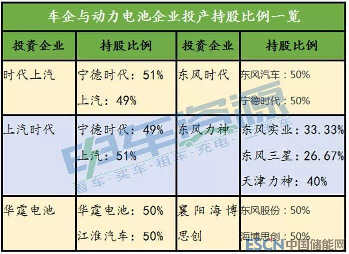 記者從寧德時(shí)代、國軒高科、天津力神、華霆、海博思創(chuàng)等動(dòng)力電池企業(yè)與東風(fēng)、上汽、廣汽、北汽、奇瑞等整車企業(yè)的持股比例可以看出,雙方之間的合作基本上持平,并且車企合作的重心在動(dòng)力電池系統(tǒng)。