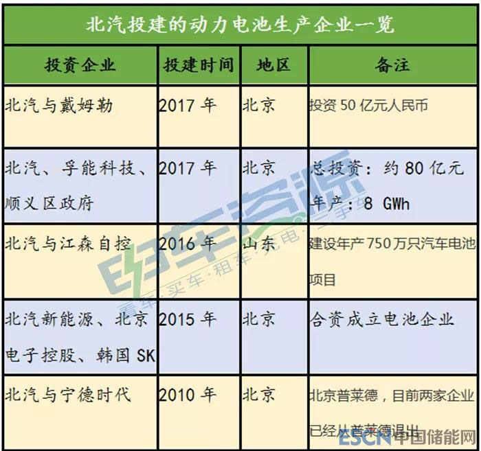 北汽不同于其他兩家企業(yè),它基本不自建動(dòng)力電池廠,為自己供貨。北汽主要的方式是與其他動(dòng)力電池企業(yè)進(jìn)行合資建廠,以及建設(shè)產(chǎn)業(yè)園,引進(jìn)動(dòng)力電池企業(yè)入駐的形式。