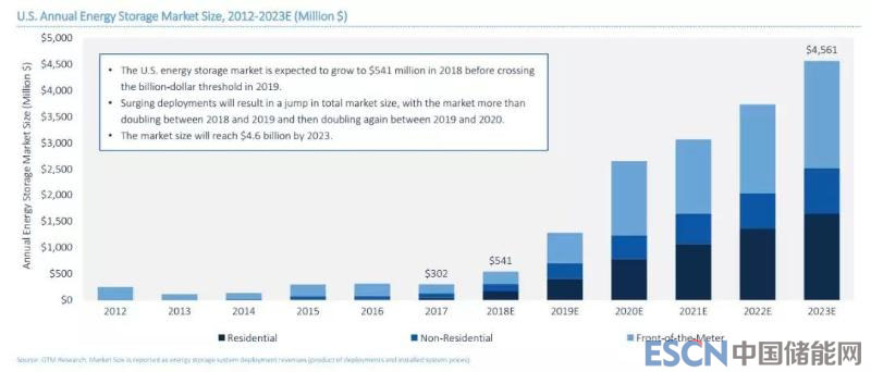 預(yù)計2018年美國儲能市場將增長至5.41億美元,然后2019年突破十億美元。
