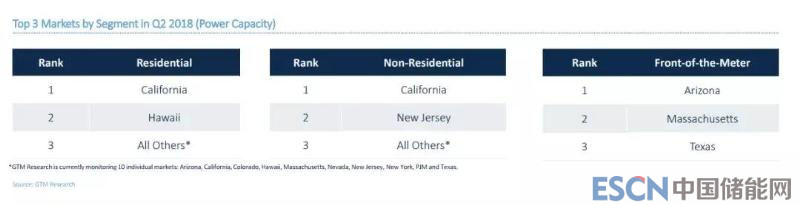 (按照區(qū)域來分,2018年第二季度,亞利桑那州、加利福尼亞州分別領(lǐng)導(dǎo)美國電表前、電表后儲能市場)