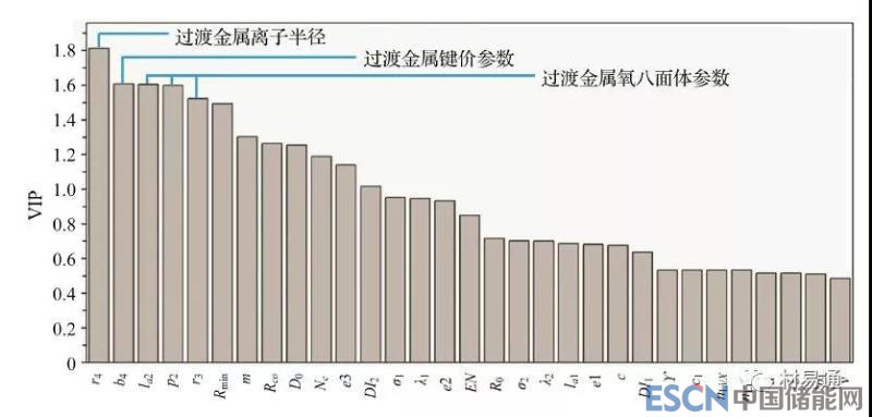圖6:采用PLS 模型因子重要性分析探尋對正極材料脫鋰過程體積變化影響較大的參數(shù)。