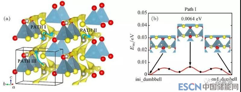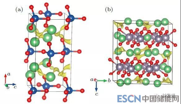 圖2: 用鍵價(jià)方法計(jì)算得到的(a) Li2SiO3 和(b) Li2SnO3 的離子輸運(yùn)通道