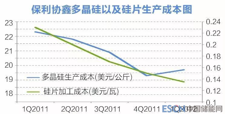 擴(kuò)產(chǎn)之后的成本降低收效明顯。截至2012年第一季度,保利協(xié)鑫多晶硅生產(chǎn)成本已經(jīng)從去年同季度的22.3美元/公斤降低到19.7美元/公斤,硅片成本也從0.23美元/瓦降至0.135美元/瓦,令同行側(cè)目。