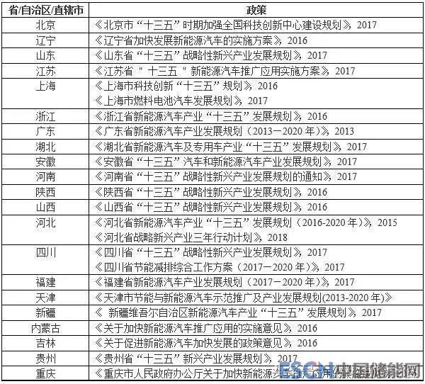 早在2001年,科技部發(fā)布的“國家“863”計劃重大專項”就將燃料電池汽車研究開發(fā)列入其中;到了近些年,緊密出臺的《節(jié)能與新能源汽車產(chǎn)業(yè)發(fā)展規(guī)劃(2012—2020年)》、《中國制造2025》、《能源技術(shù)革命創(chuàng)新行動計劃(2016-2030年)》、《國家創(chuàng)新驅(qū)動發(fā)展戰(zhàn)略綱要》、《“十三五”國家戰(zhàn)略性新興產(chǎn)業(yè)發(fā)展規(guī)劃》以及《汽車產(chǎn)業(yè)中長期發(fā)展規(guī)劃》等文件,均明確提及要重點研發(fā)氫能與燃料電池技術(shù),表現(xiàn)出中央政府對該新型能源技術(shù)的大力支持。此外,多個省/自治區(qū)/直轄市也積極布局燃料電池產(chǎn)業(yè),形成了巨大的引領(lǐng)效應(統(tǒng)計如下表)。