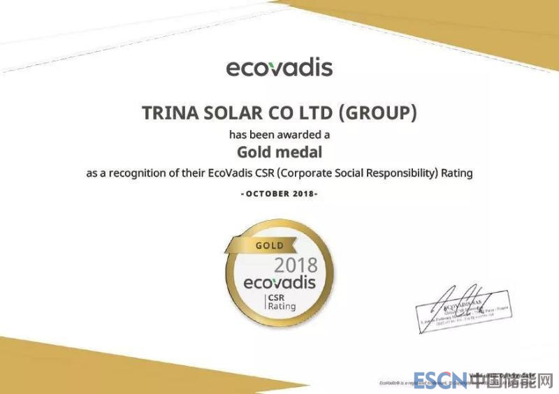 中國儲能網(wǎng)訊:全球知名第三方獨立評估機構(gòu)EcoVadis日前發(fā)布2018全球企業(yè)社會責任評估結(jié)果,天合光能企業(yè)社會責任表現(xiàn)穩(wěn)步提升,位列全球電子元件制造行業(yè)板塊排名前3%,被授予“企業(yè)社會責任成就金獎”,這是天合光能連續(xù)第二年獲此殊榮。