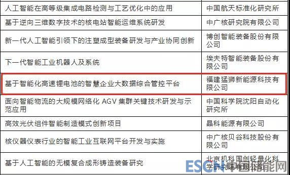中國儲能網(wǎng)訊:近日,國家首批人工智能與實體經(jīng)濟(jì)深度融合創(chuàng)新項目名單發(fā)布,猛獅科技旗下福建猛獅新能源“基于智能化高速鋰電池的智慧企業(yè)大數(shù)據(jù)綜合管控平臺”項目成功入選,同期上榜的還有中科院、中廣核研究院、中國航天標(biāo)準(zhǔn)化研究院等機(jī)構(gòu)的申報項目。