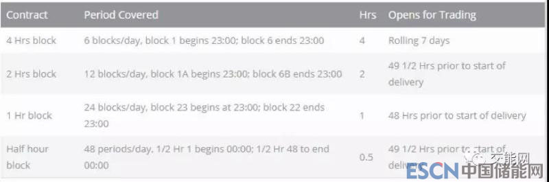 小時交易合約覆蓋日前合約以外的4小時,交易時間為10:15 PM,在相應(yīng)的流動期前三天。日前合同可以作為基本負(fù)荷(每小時1MW的恒流電力,11:00 PM到第二天晚上11:00 PM,每日) 和峰值負(fù)荷(恒流每小時1MW的電力,7:00 AM到7:00 PM,周一至周五)。這些合約在上市前兩天的10:15 PM上市交易。所有合同的報價單位是£/kWh,最小單位為£0.01?,F(xiàn)貨合約是連續(xù)交易的。