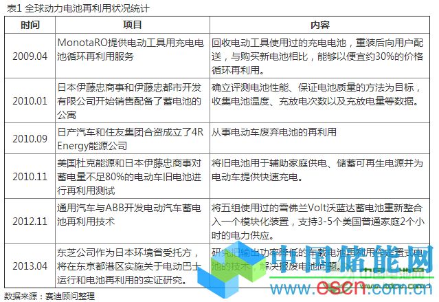 新能源汽車動(dòng)力鋰電池再利用領(lǐng)域主要瞄準(zhǔn)ICT領(lǐng)域、家庭以及可再生能源發(fā)電儲(chǔ)能等領(lǐng)域。雖然動(dòng)力鋰電池再利用實(shí)踐在國(guó)內(nèi)還未開(kāi)展,但是在日本、美國(guó)已經(jīng)有多年的示范經(jīng)驗(yàn)。日韓從新能源汽車發(fā)展伊始就開(kāi)始著力動(dòng)力電池再利用的研究,這些前期研究工作給我國(guó)開(kāi)展電池再利用研究提供了很好的借鑒。