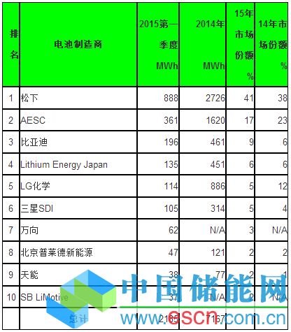 中國儲(chǔ)能網(wǎng)訊:2015年第一季度,面對持續(xù)走高的全球電動(dòng)汽車市場,各大電動(dòng)乘用車電池生產(chǎn)商也加足馬力,根據(jù)不同品牌車型受追捧的程度不同,松下依舊保持獨(dú)大地位,比亞迪的市場份額則從6%上升到9%,擠進(jìn)前三名。