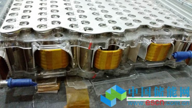 NTC則是固定在連接片上進(jìn)行溫度的采集。完成后,上表面還用一片吸塑盤進(jìn)行覆蓋保護(hù)??梢钥吹贸觯麄€(gè)模組完成下來,結(jié)構(gòu)非常牢固可靠,而所有的連接也都比較整齊有序。