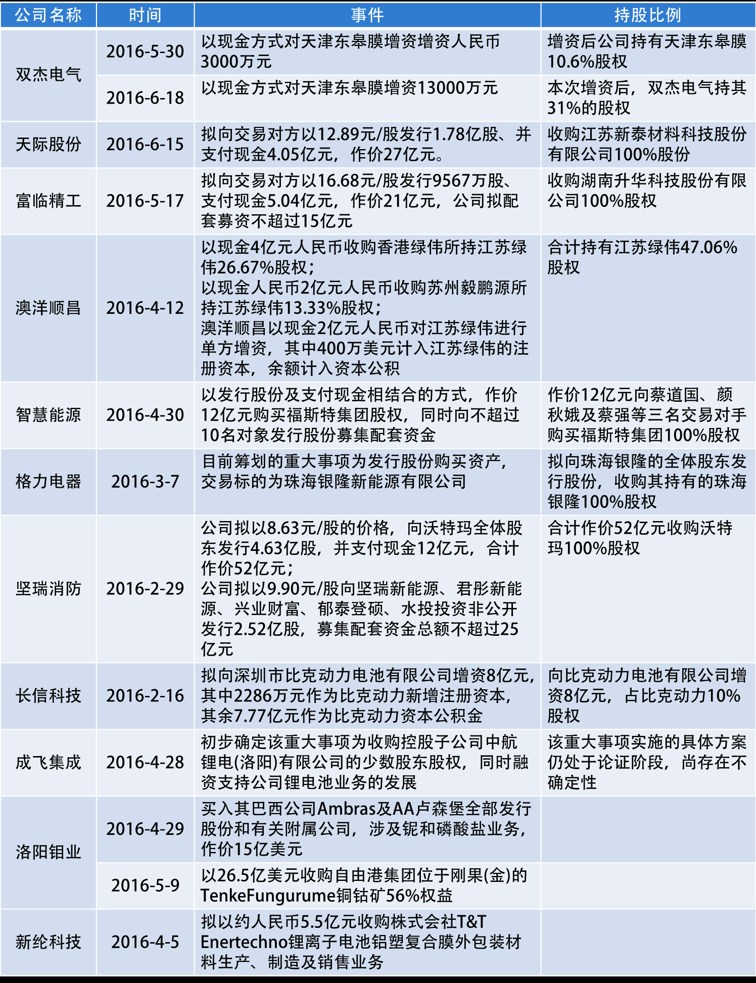 圖表 2016年上半中國鋰電池并購事件盤點(diǎn)
