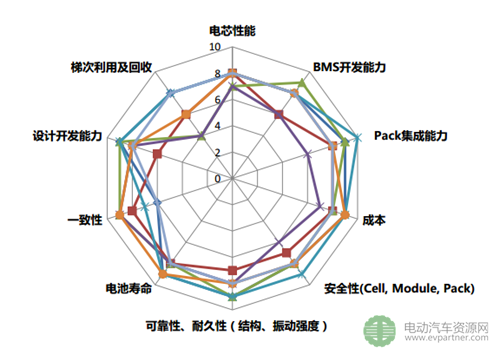 從設(shè)計開發(fā)能力、性能、成本、壽命、安全、一致性、梯次利用及回收等10個維度對電池系統(tǒng)進行嚴(yán)格評估。找出薄弱環(huán)節(jié),重點提升。
