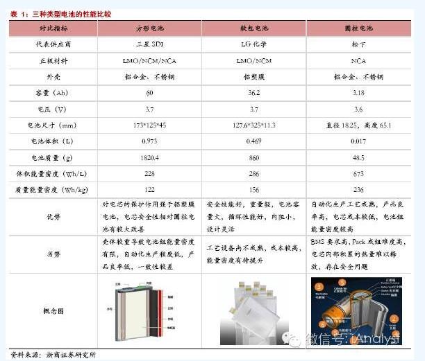目前鋰離子電池主要方形、圓柱、軟包三大類,其中方形和圓柱的外殼主要采用鋁合金、不銹鋼等硬殼,而軟包的外殼則采用鋁塑膜來制造,這是他們的本質區(qū)別,如表1所示,性能方面軟包鋰電池的主要優(yōu)勢包括: