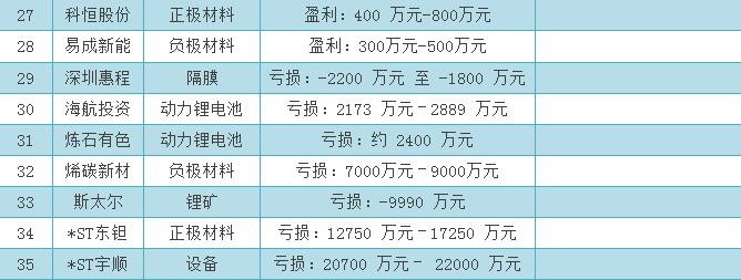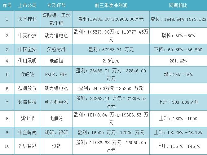 35家鋰電上市公司前三季度業(yè)績(jī)預(yù)告凈利潤(rùn)一覽: