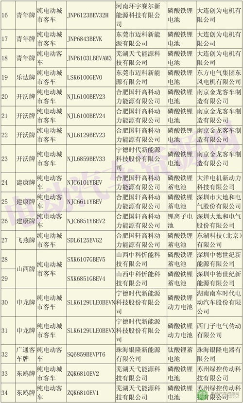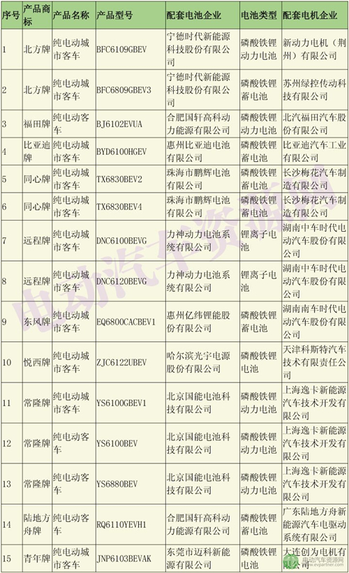 以下是290批新車公示中純電動(dòng)客車(不含純電動(dòng)客車底盤)配套的電池電機(jī)企業(yè):