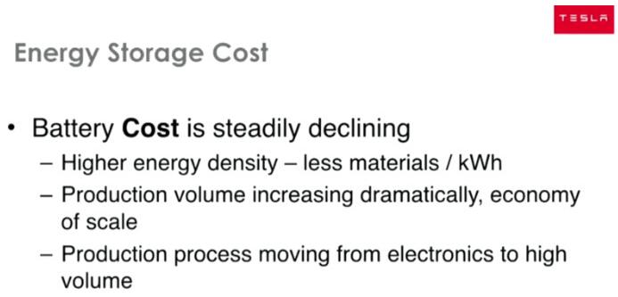 而在本次 Straubel 的演講中,他將成本和電池能量密度直接聯(lián)系起來:
