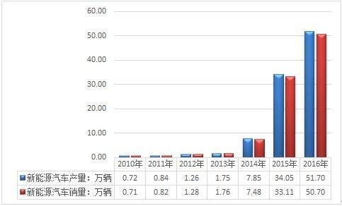 中國儲能網(wǎng)訊:雖然受騙補影響,新能源汽車市場一度受到質疑,然而,瑕不掩瑜的是,2016年是中國新能源汽車產(chǎn)銷量再創(chuàng)新高,數(shù)據(jù)顯示,2016年我國新能源汽車產(chǎn)銷分別為51.7萬輛和50.7萬輛,比上年同期分別增長51.7%和53%。其中,純電動汽車銷售40.9萬輛,占據(jù)80%,比上年同期增長65.1%。