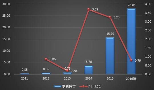 前瞻產(chǎn)業(yè)研究院發(fā)布的《動力電池PACK行業(yè)發(fā)展前景預測與投資戰(zhàn)略規(guī)劃分析報告》統(tǒng)計顯示,2016年中國汽車動力電池產(chǎn)量30.8GWh,同比增長82%。增長原因有1、2016全國新能源汽車產(chǎn)量同比增速37%,2、2015年底生產(chǎn)的部分整車需補裝電池,3、2009-2013年生產(chǎn)的部分整車需要換裝電池。