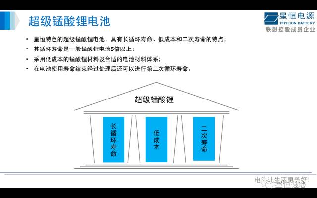 通過多年的研發(fā)和改善,星恒推出了具有高性價比的“超極錳酸鋰”,具有長循環(huán)壽命、低成本和二次壽命的三大特點(diǎn)。
