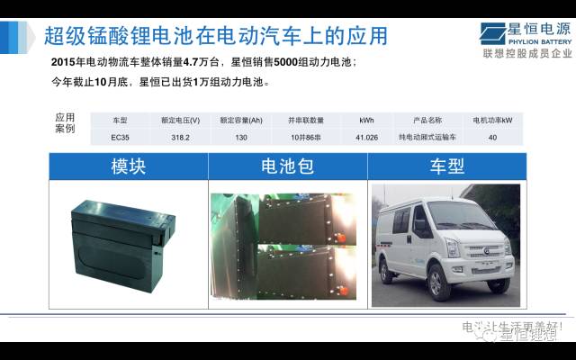 由于我國新能源汽車推廣路線的不同,以磷酸鐵鋰商業(yè)化最突出,并且隨著對比能量的追求,開始加快推進(jìn)三元。然而,以星恒為代表的一批動力鋰電池企業(yè)仍采用與國際接軌的錳酸鋰技術(shù)方案,并開展了大膽的創(chuàng)新,發(fā)揮其優(yōu)勢,主力應(yīng)用在商用車領(lǐng)域。