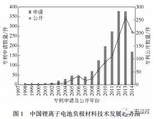 通過檢索和分析鋰離子電池負(fù)極材料的中國發(fā)明專利數(shù)據(jù),得出鋰離子電池負(fù)極材料的技術(shù)發(fā)展趨勢及市場競爭情況。分析表明: