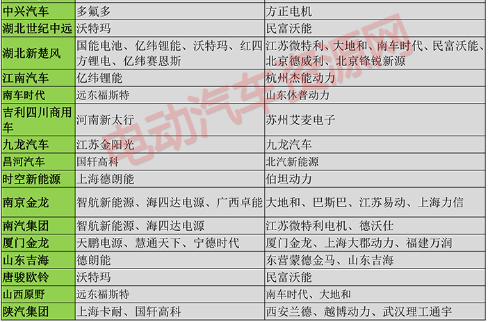 (3)車(chē)企與配套電池電機(jī)分布情況