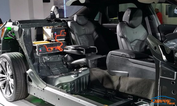由于都是T型構(gòu)造,我們可以假定CT6動力電池布置來想象Velite 5的動力電池布局,如下圖,T型動力電池布置在后排座椅后面與中央過道,一方面更能確保碰撞安全,另一方面是節(jié)省尾箱空間,但不足在于后排中央地臺過高,所以后排中間坐人就比較辛苦了。