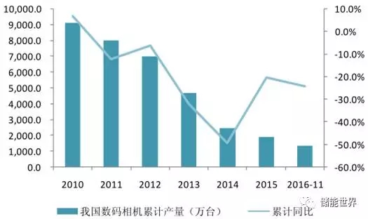 目前 3C 領(lǐng)域仍是鋰離子電池的最主要下游消費(fèi)終端,但是增速開始逐漸趨緩。我國是 3C 產(chǎn)品生產(chǎn)大國,過去幾年受益于國內(nèi)及海外市場需求的快速增長,出口與內(nèi)銷增速保持強(qiáng)勁,但是,隨著 3C 電子產(chǎn)品的普及,市場已趨于成熟,市場新增量逐漸趨緩。據(jù)統(tǒng)計(jì),2016 年,我國共生產(chǎn)手機(jī) 22.61 億部,同比增長20.30%。但是,隨著智能手機(jī)的普及,以及智能手機(jī)照相、文檔處理等功能的日漸完善提高,價(jià)值 pad 的出現(xiàn),筆記本電腦和數(shù)碼相機(jī)的產(chǎn)銷受到了一定的沖擊;數(shù)據(jù)統(tǒng)計(jì),2015 年 1-10 月,我國共生產(chǎn)筆記本電腦 1.47 億部,同比下降 13.06%,2016 年 1-11 月,我國共生產(chǎn)數(shù)碼照相機(jī) 1,368.74 萬臺,同比下降 24.27%。