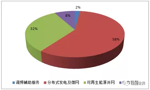 儲能主要應(yīng)用于電力的削峰填谷、新能源發(fā)電的平滑入圍以及分布式發(fā)電的調(diào)節(jié)。可以說, 儲能是新能源進(jìn)一步發(fā)展的有效支撐,在發(fā)電端、輸配電端以及用電端都起著重要的作用。