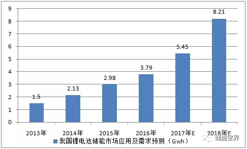 據(jù)統(tǒng)計(jì)預(yù)測,2016 年我國儲能市場鋰離子電池的需求量約為 3.79 Gwh,到 2018年,我國儲能市場鋰離子電池的需求量將達(dá)到 8.21 Gwh。未來兩年,儲能鋰離子電池累計(jì)需求將達(dá)到 13.66Gwh。