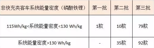 高工鋰電網(wǎng)梳理發(fā)現(xiàn),2016年1-5批推薦目錄中,磷酸鐵鋰的系統(tǒng)能量密度多集中在90Wh/kg以下。而今年公布的1-3批推薦目錄中,非快充類新能源客車載磷酸鐵鋰系統(tǒng)能量密度普遍較高,超過130Wh/kg達(dá)127款。