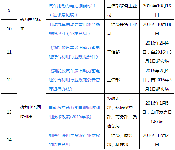2016年1月5日,國家發(fā)展改革委、工信部、環(huán)保部、商務(wù)部、質(zhì)檢總局聯(lián)合印發(fā)《電動汽車動力蓄電池回收利用技術(shù)政策(2015年版)》,對電動汽車動力電池的設(shè)計生產(chǎn)、回收主體、梯次利用及再生利用等做出了具體規(guī)定。