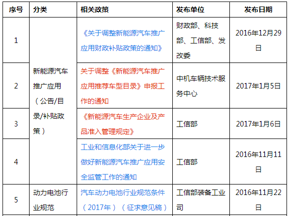 2016年12月29日,財政部、科技部、工業(yè)和信息化部、發(fā)展改革委聯(lián)合發(fā)布關(guān)于調(diào)整新能源汽車推廣應(yīng)用財政補(bǔ)貼政策的通知。補(bǔ)貼新政將補(bǔ)貼標(biāo)準(zhǔn)與動力電池相掛鉤: