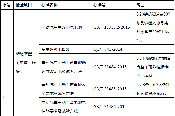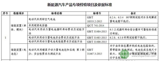 新規(guī)定要求的新能源汽車產(chǎn)品專項(xiàng)檢驗(yàn)?zāi)夸浿?,與動力電池相關(guān)的檢驗(yàn)項(xiàng)目如下: