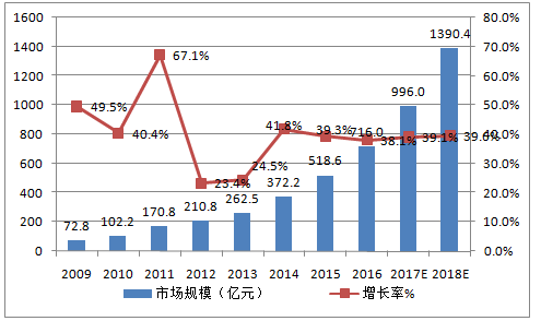 IDC市場(chǎng)是目前對(duì)UPS需求最為旺盛的領(lǐng)域之一。據(jù)相關(guān)機(jī)構(gòu)數(shù)據(jù)統(tǒng)計(jì),過(guò)去8年國(guó)內(nèi)IDC市場(chǎng)復(fù)合增長(zhǎng)率達(dá)到42.3%,其中,2009-2011年間IDC市場(chǎng)處于高速增長(zhǎng)期,每年增速都維持在40%以上;2012年和2013年受宏觀經(jīng)濟(jì)下滑影響,整體市場(chǎng)增速下降到25%以下;此后,一方面政府加強(qiáng)政策引導(dǎo),逐步開(kāi)放了IDC牌照申請(qǐng),另一方面大數(shù)據(jù)、云計(jì)算等產(chǎn)業(yè)興起,數(shù)據(jù)中心的市場(chǎng)需求不斷增多。2014年IDC市場(chǎng)增速再次超過(guò)40%,2015年市場(chǎng)增速為39.3%,2016年市場(chǎng)增速也達(dá)到了38.1%。據(jù)預(yù)測(cè),今明兩年市場(chǎng)增長(zhǎng)率將繼續(xù)在40%左右,明年IDC市場(chǎng)規(guī)模有望接近1400億元,將明顯拉動(dòng)UPS的需求。