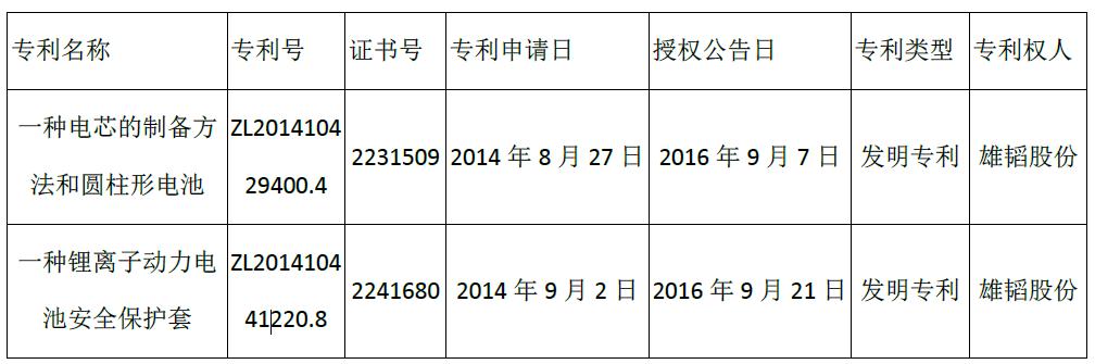 中國(guó)儲(chǔ)能網(wǎng)訊:雄韜股份午間公告稱,公司于近日獲得中華人民共和國(guó)國(guó)家知識(shí)產(chǎn)權(quán)局頒發(fā)的專利證書,具體情況如下: