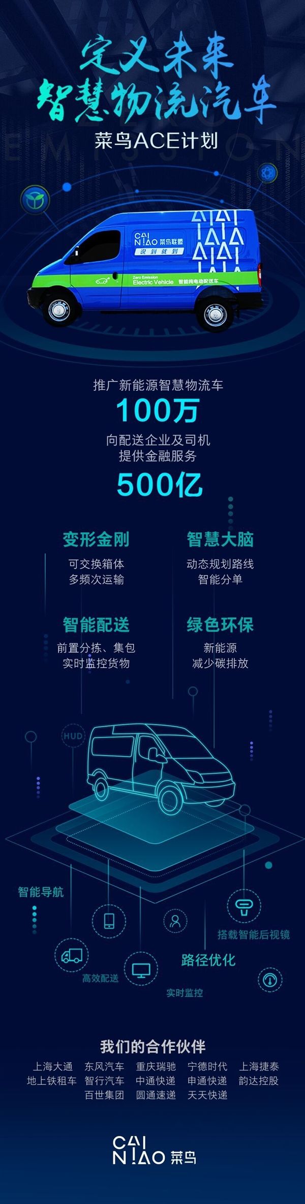 中國(guó)儲(chǔ)能網(wǎng)訊:5月22日,菜鳥(niǎo)網(wǎng)絡(luò)發(fā)布代號(hào)為“ACE”的未來(lái)綠色智慧物流汽車計(jì)劃,目標(biāo)是打造并推廣100萬(wàn)輛新能源物流車。阿里巴巴董事局主席馬云在當(dāng)天的演講中表示,菜鳥(niǎo)網(wǎng)絡(luò)將推出100萬(wàn)輛新能源智慧物流車,“真的就是個(gè)小目標(biāo),這100萬(wàn)輛車就是100萬(wàn)個(gè)流動(dòng)倉(cāng)庫(kù)在全中國(guó)各個(gè)城市跑?!?