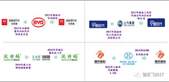 1)參股車企。國軒高科2016年開始轉型三元,參股北汽新能源(2016年占股3.75%)取得EC180等車型供應權。