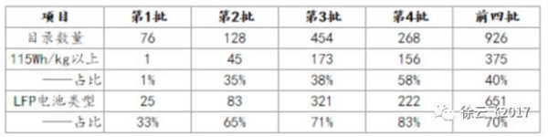 表 2: 2017年1-4批客車目錄:密度提升,LFP為主