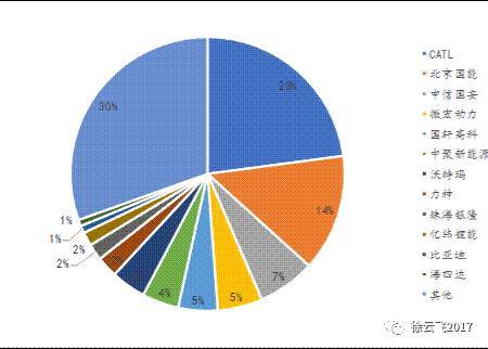 圖10:2017年1-4批乘用車目錄電池配套占比