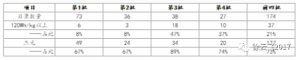 表3:2017年1-4批乘用車目錄:能量密度提升,三元占比高