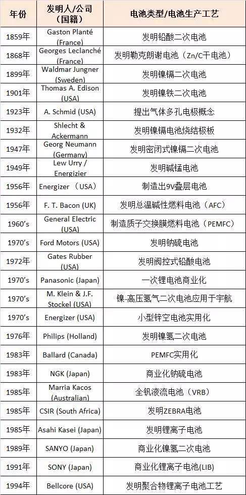 化學電源其實是一個非常古老的學科,如果從1859年法國人普蘭特發(fā)明鉛酸電池開始算起,電池工業(yè)已經(jīng)有150年的歷史了。讓我們首先回顧一下電池工業(yè)具有里程碑意義的重大技術進步和創(chuàng)新: