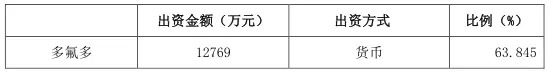 多氟多以自有貨幣資金出資,寧夏金和化工有限公司以凈資產(chǎn)出資,共同投資設(shè)立寧夏盈氟金和科技有限公司,從事氟化鹽的生產(chǎn)經(jīng)營業(yè)務(wù)。盈氟金和注冊資本2.1億元,其中多氟多貨幣出資1.43億元,占比67%,為控股股東。