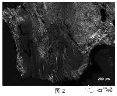 圖2對應(yīng)原料b的偏光照片,結(jié)果顯示原料b以鑲嵌型光學(xué)結(jié)構(gòu)為主,取向性較好;