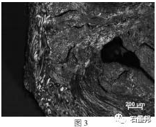 圖3對應(yīng)原料c的偏光照片,結(jié)果顯示其以流線型和流域性結(jié)構(gòu)為主,取向性較差。