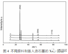 (1)不同焦類原料制備的石墨材料取向性有差異,相同的制備工藝,取向性較好的焦類原料制備的石墨材料的取向性也較好;