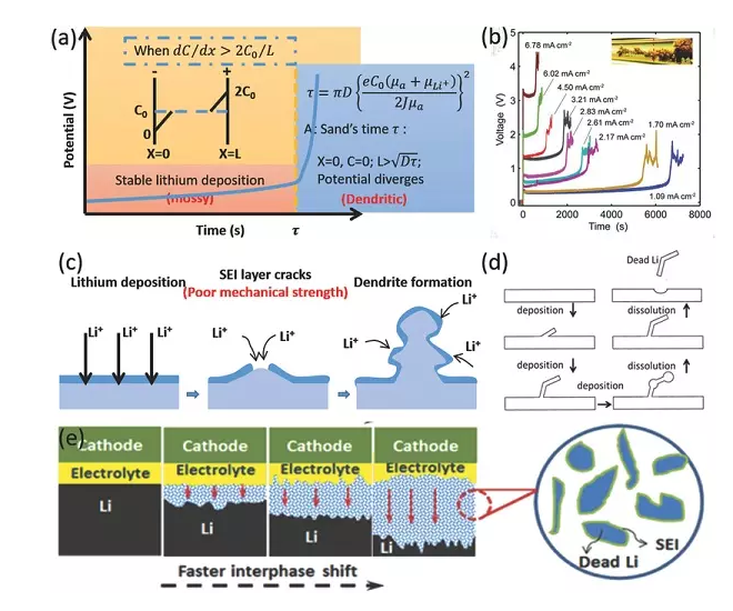d)鋰枝晶引起的安全問(wèn)題;