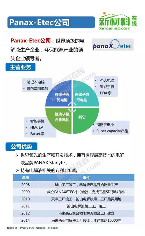 中國儲(chǔ)能網(wǎng)訊:電解液的總成本占鋰離子電池的成本的比例約為5%-15%。我們知道,常規(guī)的鋰離子電池采用的都是非水有機(jī)溶劑,當(dāng)電池由于內(nèi)部短路而發(fā)熱時(shí),電解液受熱分解產(chǎn)生氣體,輕則電池膨脹,重則導(dǎo)致電池爆炸。今天小編就為你盤點(diǎn)一下全球鋰離子電池電解液知名企業(yè)。