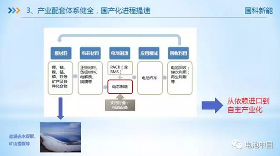 在方建華看來,產業(yè)鏈配套是否完整,決定了企業(yè)是否具有話語權。比如在材料領域,我國近年來完成了電解液六氟磷酸鋰的國產化、隔膜的國產化,大幅降低了電池材料的采購價格。此外,配套體系不僅體現在上游的原材料、電芯材料,無論是正極材料、負極材料、電解液、隔膜,我們已經由過去的依賴進口完全實現了國產化。